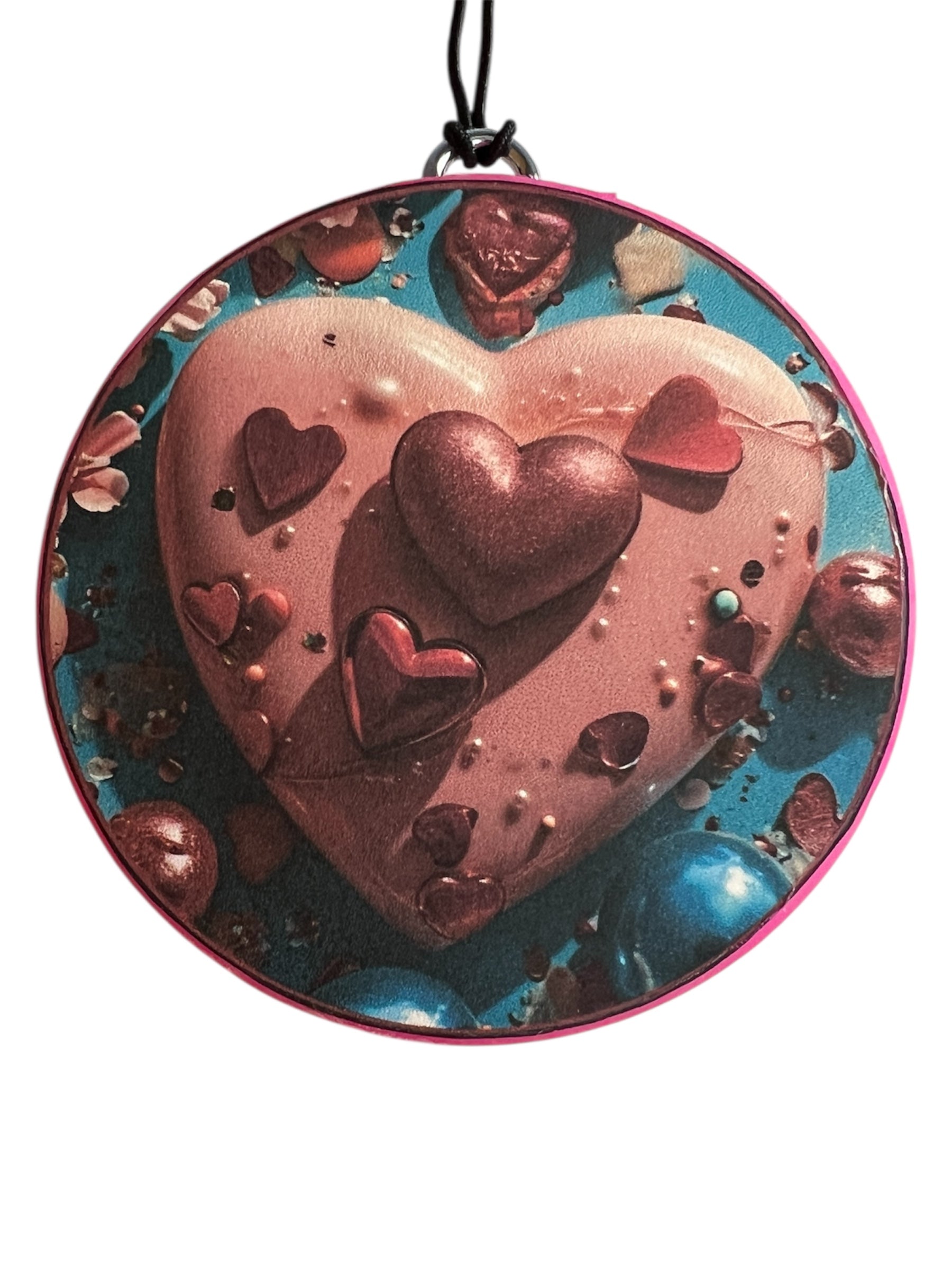 3 inch Circle freshie in pink in Sauvage Dior. Sauvage Dior - A bit of citrus with bergamot lily of the valley and lavender