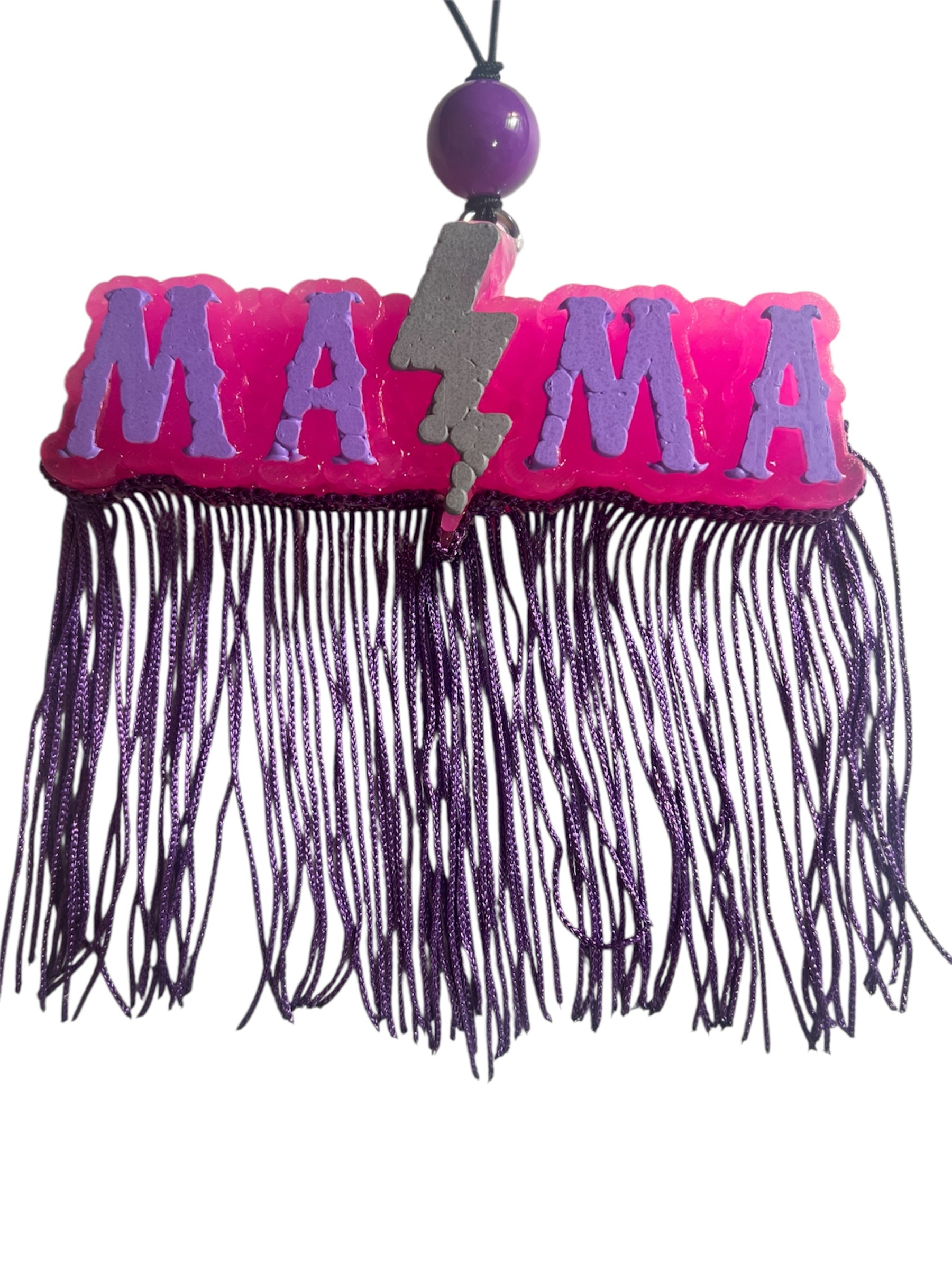 Mama freshie in pink with purple/silver detail, purple bead, and purple fringe in butt naked. Butt Naked Fragrance Oil - A fruity bouquet with strawberry, banana, peach and melon top notes with sweet lactony background.